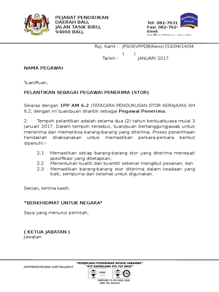 Contoh Surat Lantikan Pegawai Pengurusan Aset Dan Stor Oleh Ketua Jabatan Pdf
